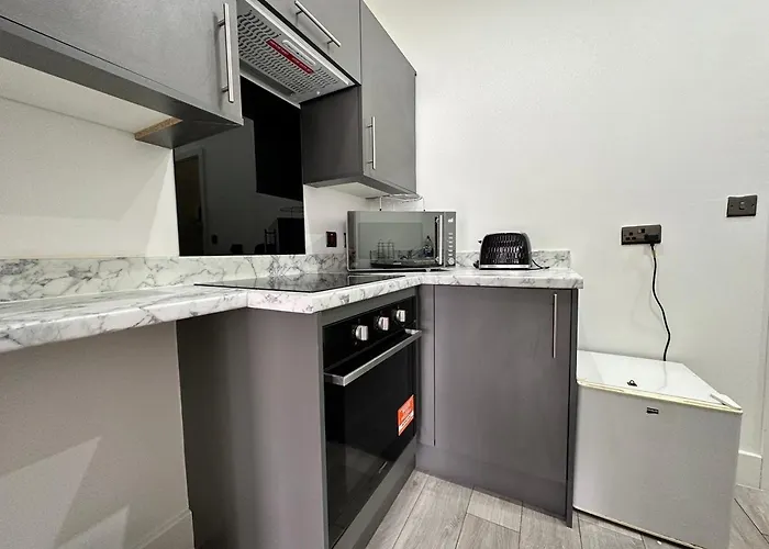 Cute, Stylish 1 Bedroom Leeds City Apartment靠近维多利亚区,距离利兹市中心仅有10分钟路程. 公寓有微波炉,电子热水壶 和冷冻机,都是在大厨房里的.